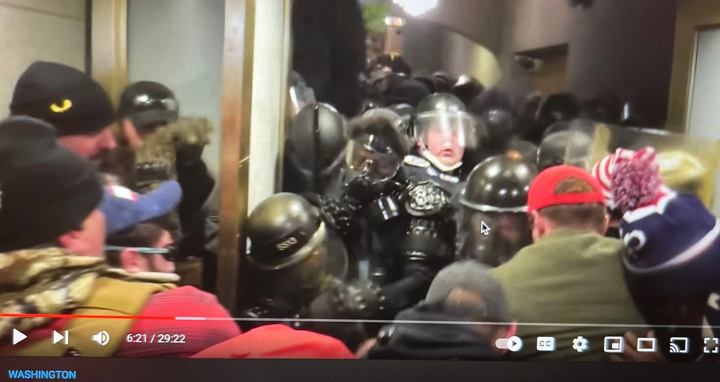 More than 40 rioters assaulted Sgt. Gonell on January 6, 2021. Here are some of notable actions by Sgt. Gonell during the insurrection highlighted by red arrows. He helped protect the elected officials, their staff, his colleagues and rendered aid to his attackers.