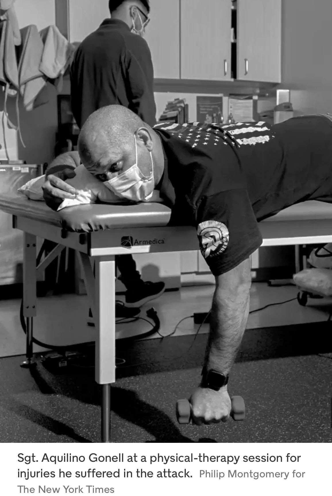 Although he's no longer an officer, he remain steadfast in bringing to justice those who assaulted and contributed in ending his career. Under oath, he have provided crucial harrowing testimony to the U.S. Congress’ January 6th Select Committee and the federal courts in Washington, D.C. as a witness and survivor during criminal trials as well as reminding everyone through news interviews that the tragic events of January 6 should not be downplayed or whitewashed.